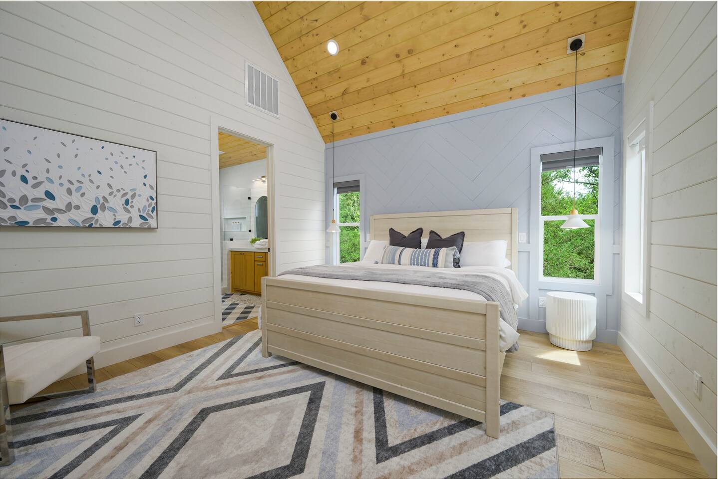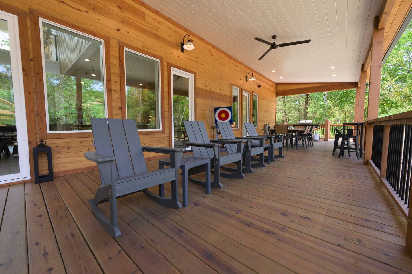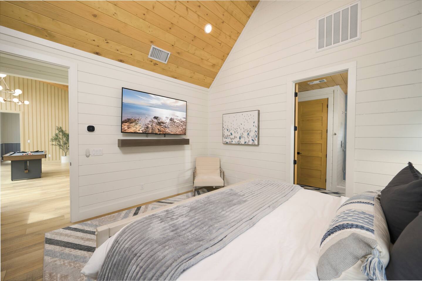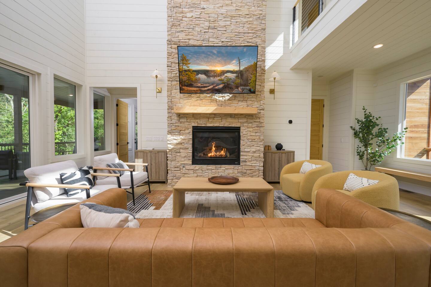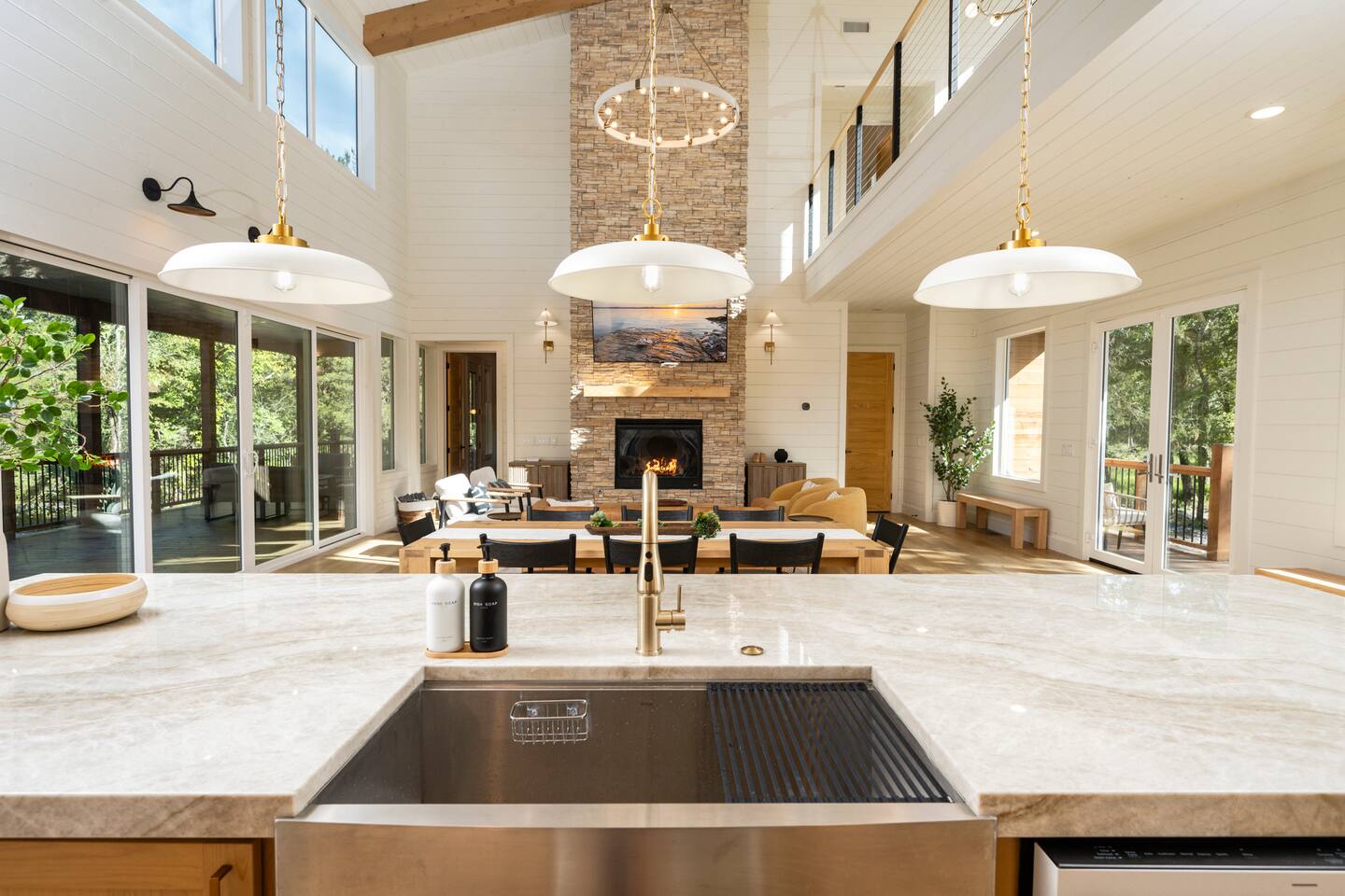 Step inside The Bridge of Wonders and experience a spacious, modern interior designed for comfort and relaxation, with luxurious finishes, open living areas, and thoughtful touches that make it perfect for families and groups alike. Experience a Truly Unique Landscape Nestled by a boulder-lined creek, The Bridge of Wonders offers an enchanting escape where soothing water sounds and breathtaking views set the scene for a serene getaway. The iconic bridge adds charm and access to an expansive back deck, creating a private oasis that feels like your own nature reserve. Sleeping Arrangements • Master Bedroom 1: Full king bed, ensuite bathroom, private access to deck. • Master Bedroom 2: Full king bed, ensuite bathroom, private access to deck. • Master Bedroom 3: Full king bed, ensuite bathroom, access to private balcony. • Bedroom 4: Queen bed with access to private balcony. • Bedroom 5: Bunk room with 4 single beds • Large playroom: Optional queen sofa bed and foldable queen mattress. ** Additional sleeping options are available. If you have specific needs, please reach out, and we’ll do our best to accommodate. Luxury Meets Comfort Step inside and be wowed by the open-concept living area featuring floor-to-ceiling windows, a plush leather sofa, and a cozy gas fireplace with a striking rock chimney. Relax and entertain with a 75-inch Smart TV. The gourmet kitchen is a culinary dream with high-end Café appliances, a 12 ft quartzite waterfall island, and a dining area for 8 plus additional seating for 5 on the kitchen island stools. Entertainment for All Ages The Bridge of Wonders is packed with entertainment for everyone. The game loft upstairs boasts a pool table and shuffleboard, while the playroom offers an arcade machine, a 75-inch TV, and a cozy space for kids with an adjacent enclosed bunk room. Outdoor Paradise Step out to the 2,200 sq ft covered patio, complete with multiple seating areas, a propane grill, and an outdoor bar. Cross the bridge to the oversized gazebo featuring a 6-person hot tub and a 65-inch Smart TV. Enjoy the fire pit, Adirondack chairs, and a variety of games like corn hole and life-sized Connect 4. Take a tranquil stroll along the creek or relax in the hammocks. Elegant Sleeping Quarters Five beautifully appointed bedrooms ensure restful nights, including three king suites with luxurious ensuite and private patios, a queen bedroom with a private patio, and a fun bunk room for kids. The playroom also offers two convertible couches for extra guests, as well as a foldable floor mattress. Convenient Amenities The Bridge of Wonders includes two laundry rooms, high-speed internet, and ample parking for up to 10 vehicles. For special events like weddings and family reunions, enjoy complimentary planning services. Optional Services Enhance your stay with special requests, concierge grocery service, in-cabin chef, or massages. Prime Location Just 5 minutes from Hochatown’s attractions and a short drive to Broken Bow Lake and Beavers Bend State Park for kayaking, hiking, and zip-lining.