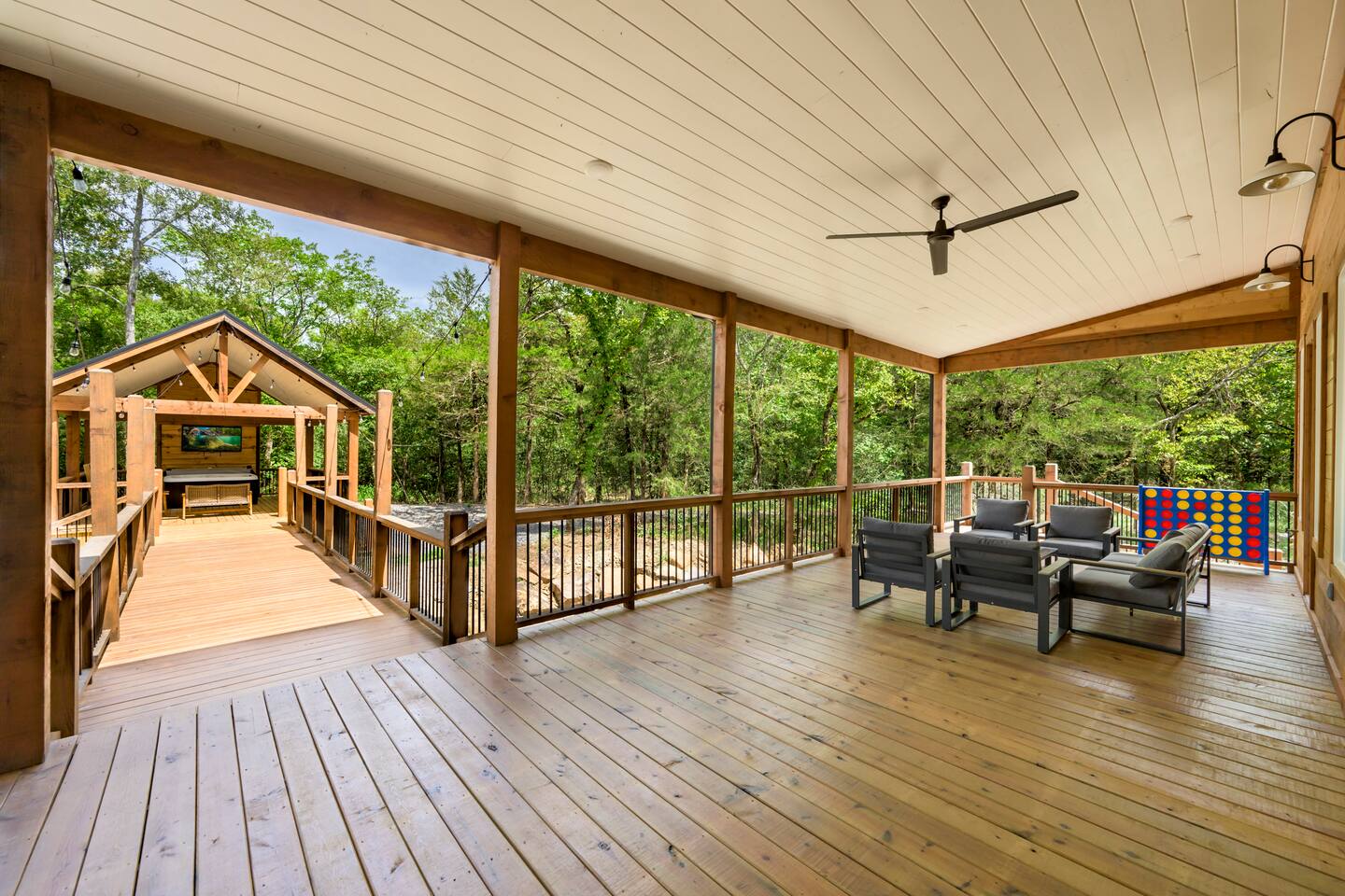 Experience The Bridge of Wonders, a lux creekside cabin where modern comfort meets natural beauty. ❤️ Creek front: On the edge of a year-round creek with boulder-lined banks. ❤️ Total Privacy: No visible neighbors ❤️ Spacious Comfort: Over 5,400 sq ft indoor/outdoor covered space for up to 15 guests. ❤️ Fun Amenities: Playroom, arcade, pool table, hot tub, and more. ❤️ Great Location: Minutes from Hochatown, Beaver's Bend Park, and the new Choctaw Casino.
