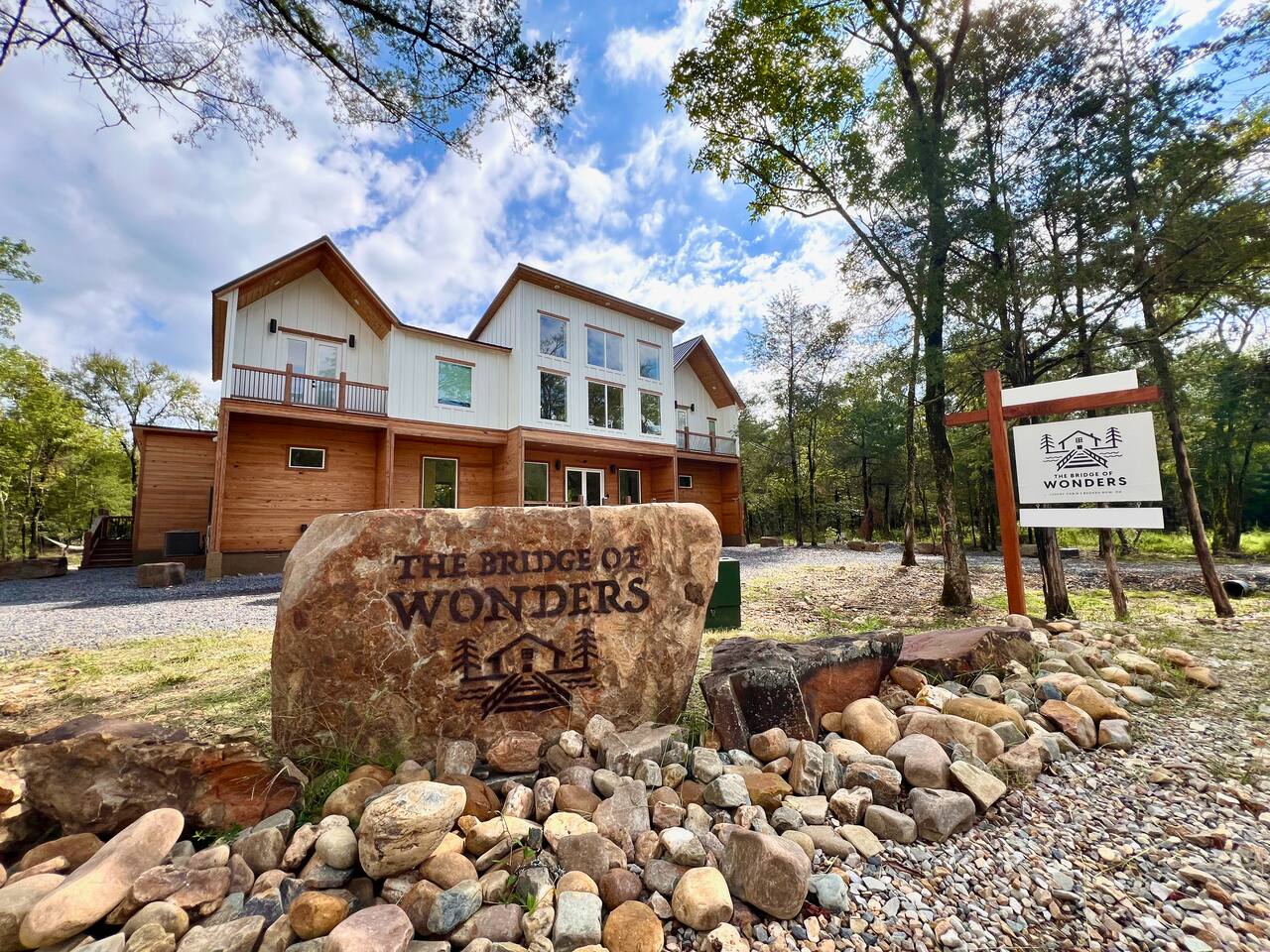 The Bridge of Wonders is situated in a tranquil and picturesque neighborhood that offers the perfect blend of seclusion and convenience. <b>Serene Natural Beauty</b> The area is known for its stunning natural landscapes, featuring lush forests, serene creeks, and boulder-lined waterways. Enjoy the peaceful ambiance and scenic views right from your doorstep. <b>Convenient Access to Attractions</b> While the property provides a secluded retreat, it’s also just minutes away from Hochatown’s vibrant attractions, including charming shops, restaurants, and entertainment options. Explore Broken Bow Lake and Beavers Bend State Park, where outdoor adventures like kayaking, hiking, and zip-lining await. <p>• <b>Private & secluded:</b> tucked along a quiet creekside lane with <b>no visible neighbors</b>—peaceful, natural setting that still feels close to everything.</p> <p>• <b>Central & convenient:</b> near the center of Hochatown (about 5 minutes) for restaurants, coffee, shops, tastings, and family attractions.</p> <p>• <b>Close to the best of Broken Bow:</b> an easy, short drive to Broken Bow Lake and Beavers Bend State Park for hiking, kayaking, boating, and fishing; Choctaw Landing is also nearby.</p> <p>• <b>Easy access:</b> area roads were <b>repaved in Sept 2025</b> for a smoother, easier arrival.</p> <p>• <b>Essentials nearby:</b> groceries, gas, and quick bites are close, so stocking up is simple.</p> <p>• <b>Nature all around:</b> tall pines, boulder-lined creek, and starry nights—your own quiet pocket of Hochatown.</p>